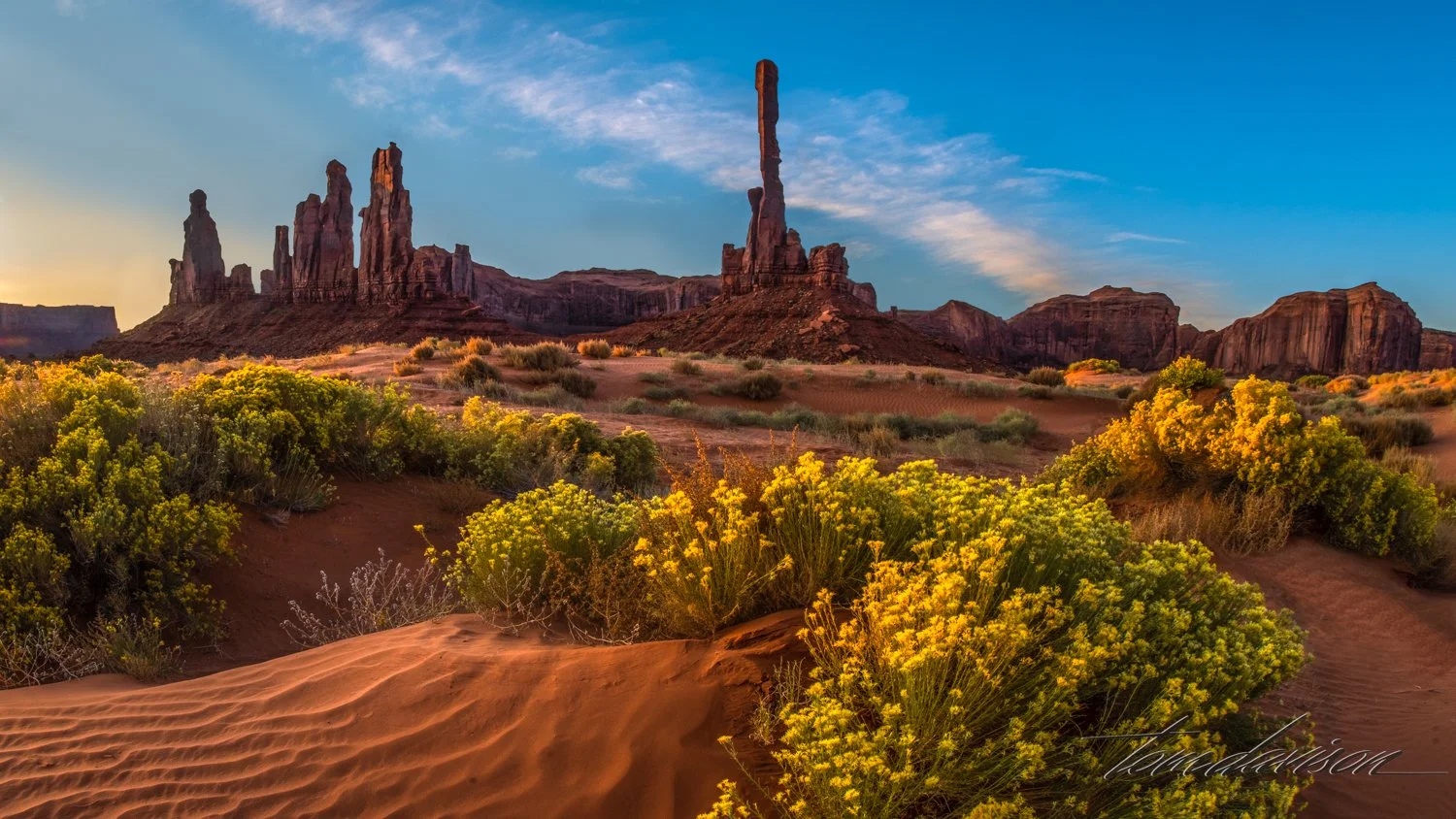 Monument Valley is known for towering sandstone buttes that are testimony to the erosion of winds and water. The Valley is most easily accessed by the looping 17 mile Valley Drive that is open to the public. If you are serious about photographing more of the Valley we recommend hiring a guide. There is a good reason for having a guide, other than it is required to go off Valley Drive. There are no marked or paved roads. l We hired two guided trips, one being a Sunrise Tour and the other an overnight campout on Hunt’s Mesa. The latter is covered in a separate blog posting.