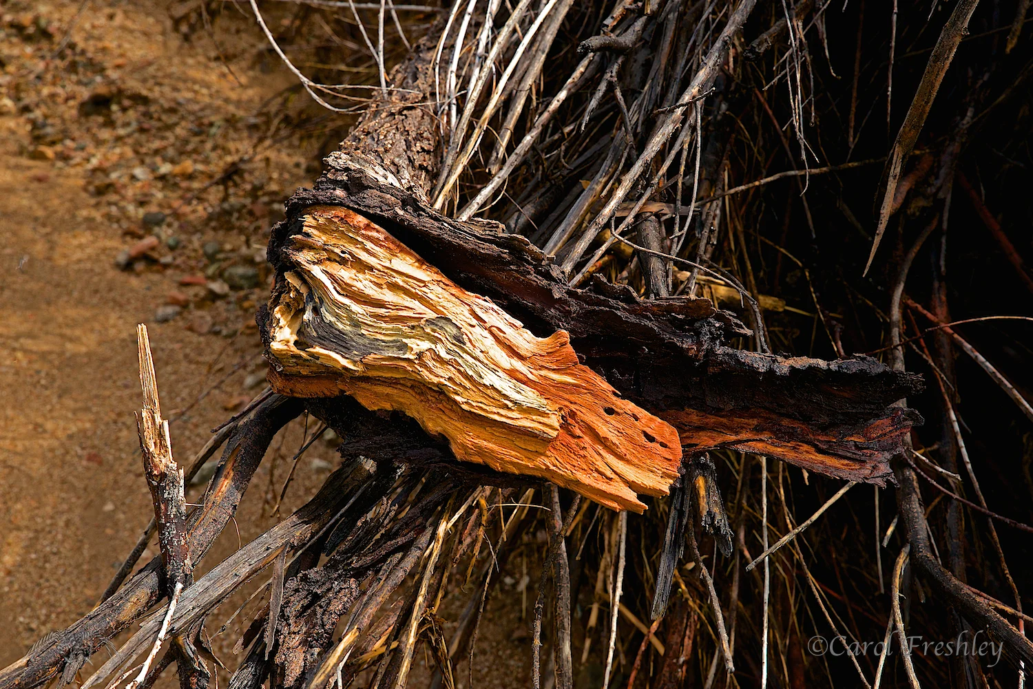There are many interesting rocks along the wash, of many colors and fissures such as this one.