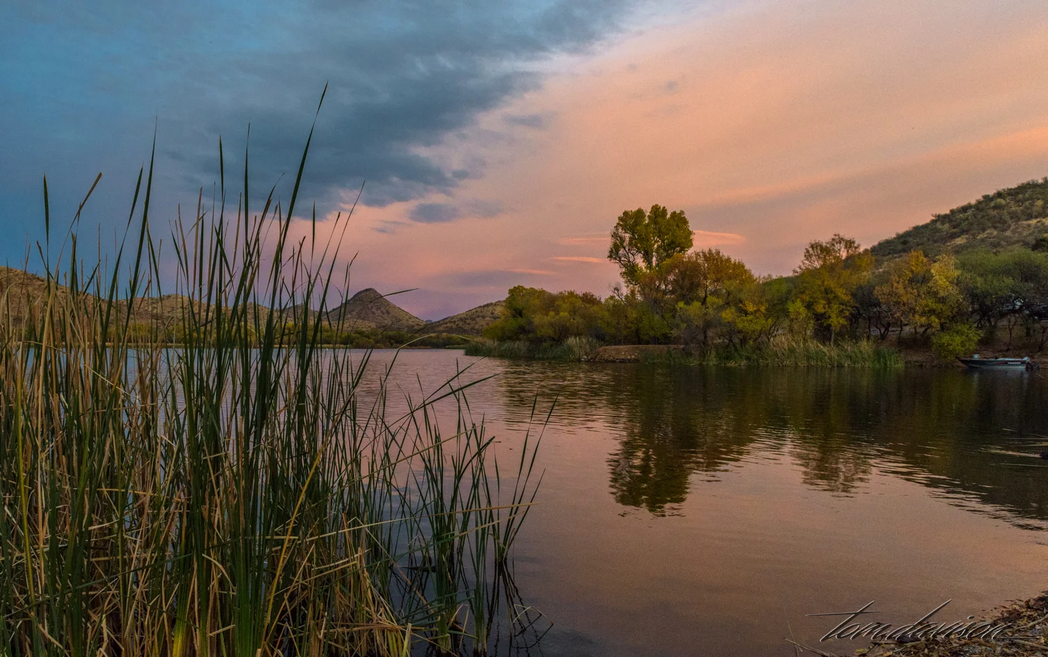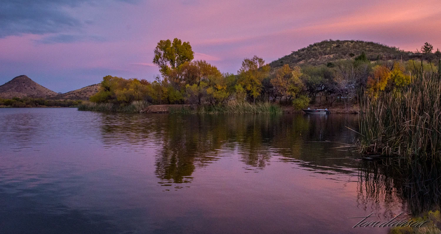 Greg and Ann arrived early in the afternoon.  There was still some time to get in some photography.  But, where to go?  I suggested driving towards Patagonia.  Tom had found some really good fudge at Ovens of Patagonia and was hoping to get more before we leave the area.  Off they went while I stayed home for some wonderful 'private time'.  Photographers are predictable.  If you go as far as Patagonia, why not check out Patagonia Lake?  They were treated to an awesome sunset over the lake.